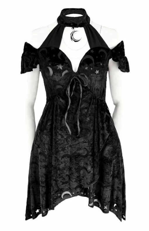 Restyle Standard Tops Black Gothic Crescent Stars See-Through Mesh Turtleneck Bodysuit