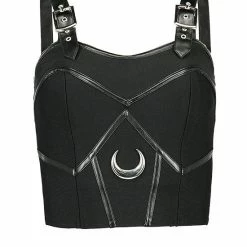 Restyle Standard Tops Black Gothic Crescent Stars See-Through Mesh Turtleneck Bodysuit