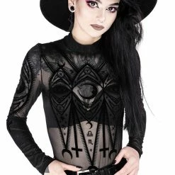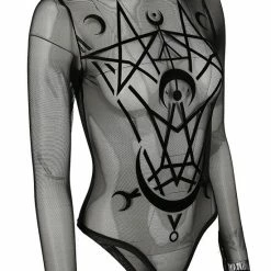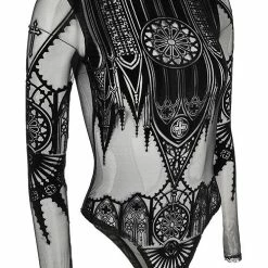 Restyle Standard Tops Black Gothic Fortune Teller See-Through Mesh Turtleneck Bodysuit