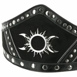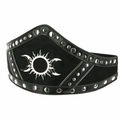 We present an elegant take on the waist belt with this PU leather-trimmed gothic design.
