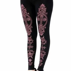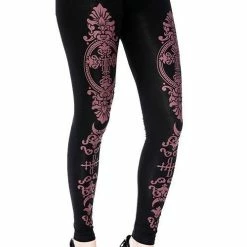 * Black gothic leggings with a burgundy monogram