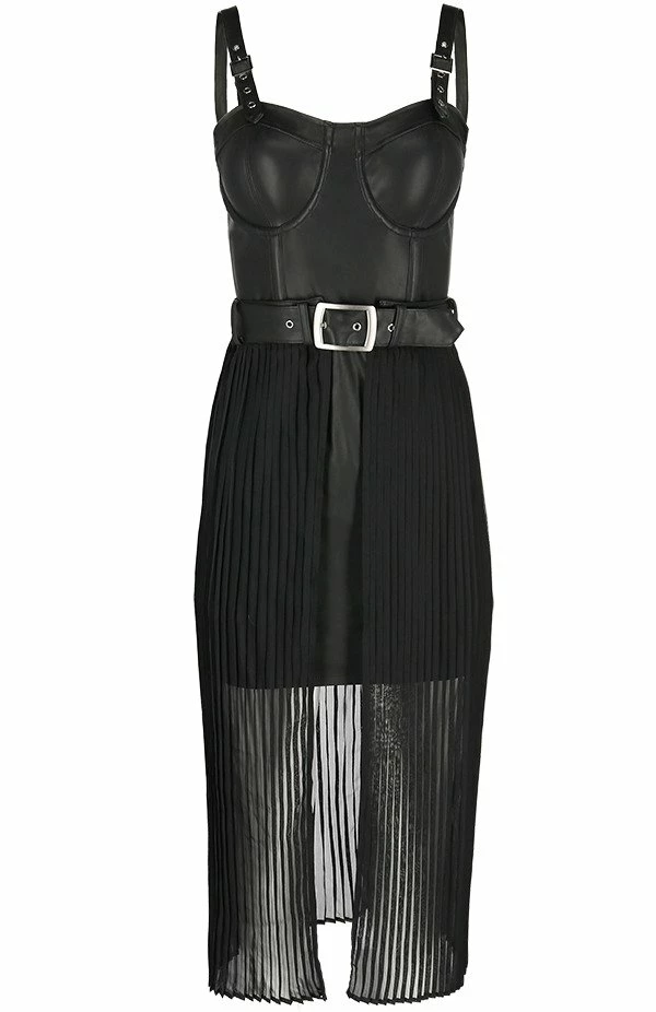 * The dress has a leather belt at the waist, to which we added a pleated chiffon overskirt