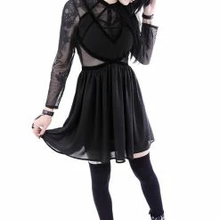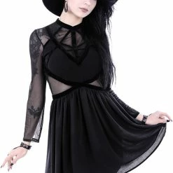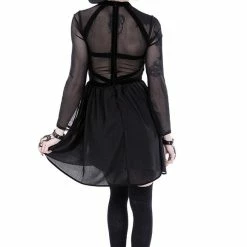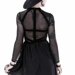 * The top part of the dress is decorated with velvet straps which create a geometric pattern
