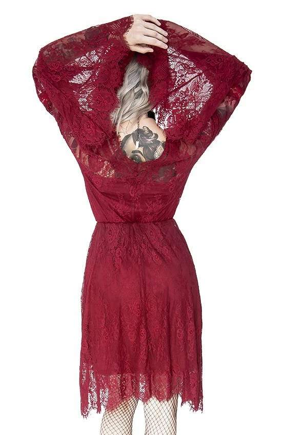 * The Eyelash Lace Dress is a burgundy gothic romance with a touch of boho
