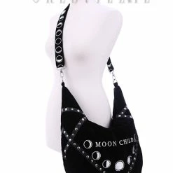 In the center of the bag there is a moon phases embroidery with MOON CHILD phrase.