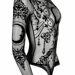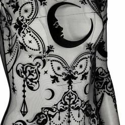 * Gothic black mesh bodysuit with jewelry and crescent prints