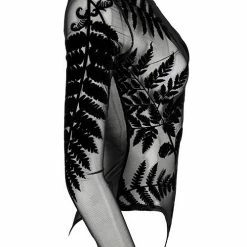 * Black gothic mesh bodysuit with a fern leaf print