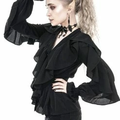 Be the first to review “Restyle Standard Tops Black Gothic V Neck Ruffled Shirt” Cancel reply