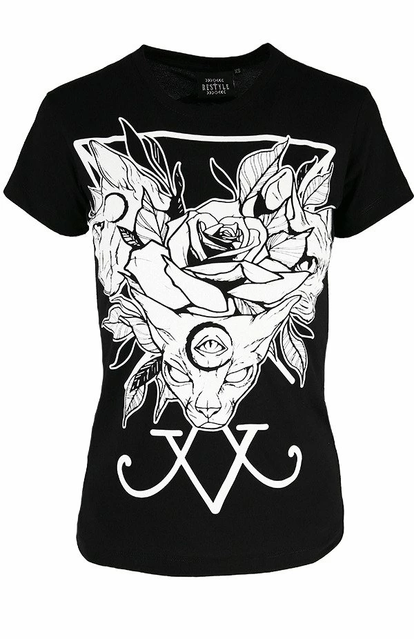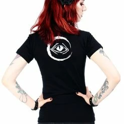 On the back there is printing of cat eye closed in harsh crescent moon.